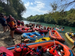 Prijavilo se je 259 udeležencev iz obeh strani meje, ki so progo preveslali v kajakih, kanujih, gumenjakih ter supih.